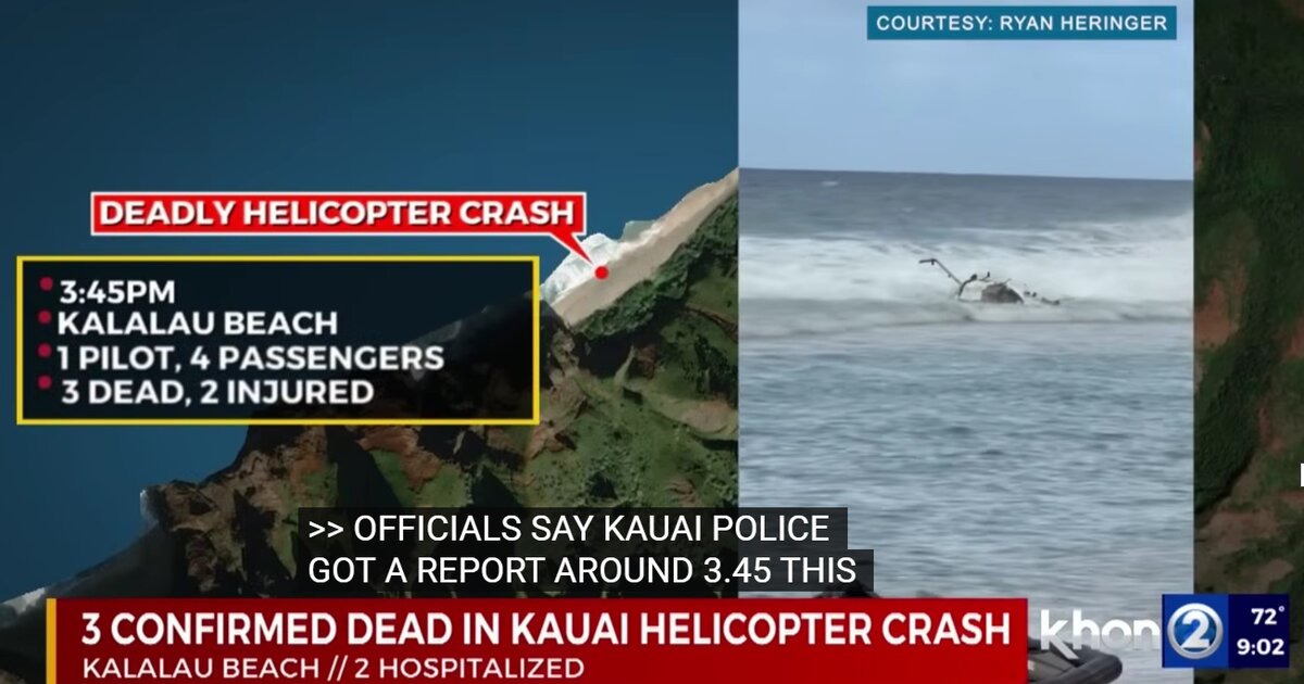 Τραγωδία εκτυλίχθηκε στη Χαβάη χθες αφού πέντε άτομα ανέβηκαν σε ελικόπτερο για να δουν τη Χαβάη από ψηλά και αυτό συνετρίβη σε μια απομακρυσμένη παραλία στο νησί Καουάι, σκοτώνοντας τρία άτομα και τραυματίζοντας άλλα δύο, ανέφεραν οι αρχές.