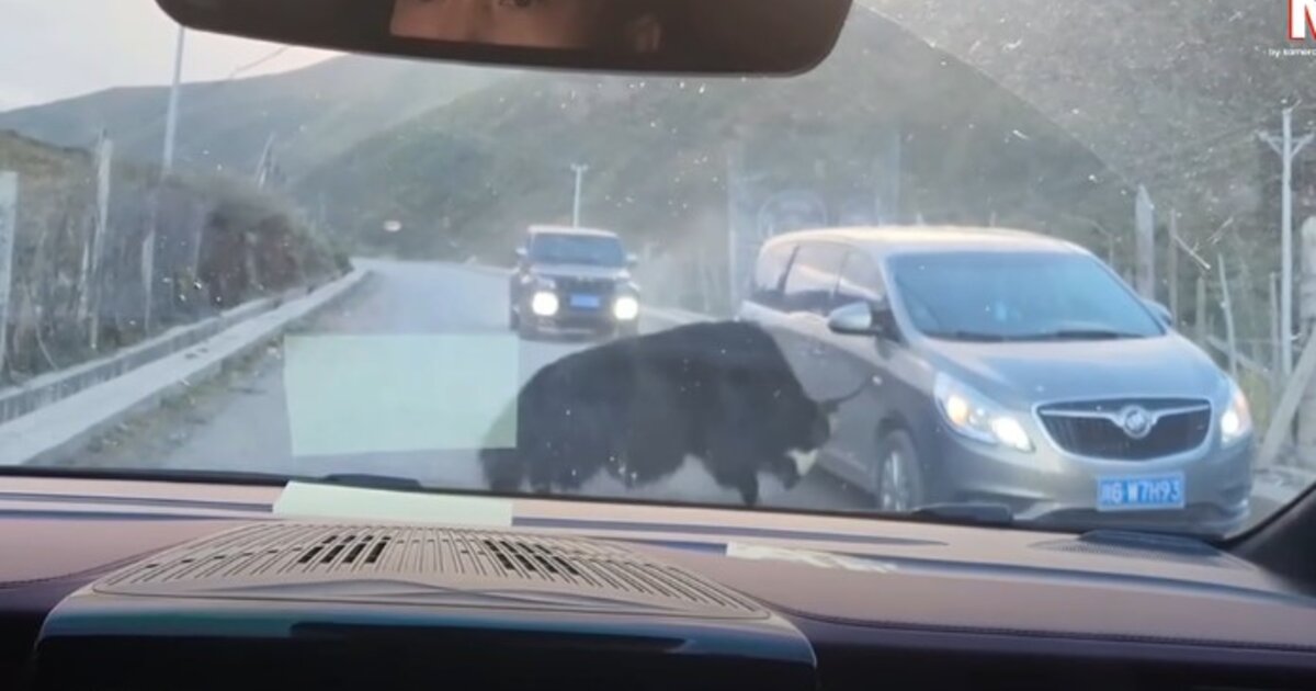 Ένα θυμωμένο γιακ, βοοειδές που ζει στην ευρύτερη περιοχή, αποφάσισε να επιτεθεί στα διερχόμενα αυτοκίνητα, προκαλώντας ένα μικρό χάος πριν, τελικά, απομακρυνθεί.