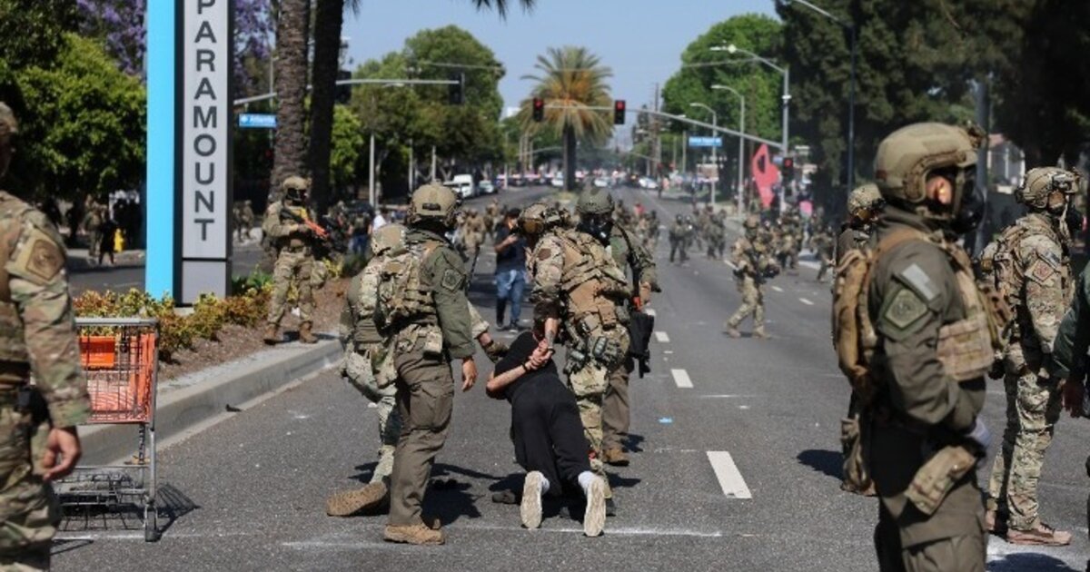 Ο Τραμπ δικαιολόγησε την απόφασή του για ανάπτυξη στρατού στο Λος Άντζελες περιγράφοντας τις διαδηλώσεις ως μια «βίαιη κατάληψη» της πόλης, χαρακτηρισμός που κατά τον Νιούσομ και την Μπας είναι κατάφωρα υπερβολικός. Ο κυβερνήτης είπε μάλιστα ότι η ανάπτυξη της Εθνοφρουράς απλώς πυροδότησε την κατάσταση και δυσκόλεψε τις τοπικές δυνάμεις επιβολής του νόμου να επέμβουν.