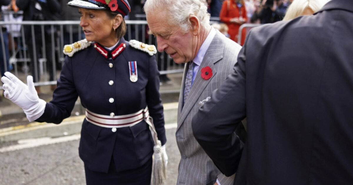 Ο Βρετανός Βασιλιάς πάντως αντέδρασε με ψυχραιμία στο περιστατικό, κοιτάζοντας απλώς στιγμιαία κάτω για να δει τι είχε «προσγειωθεί» κοντά στα πόδια του.
