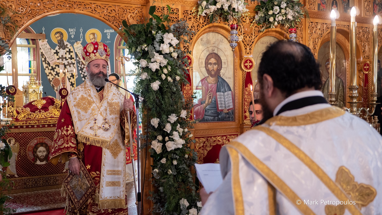 Ο Σεβασμιώτατος χοροστάτησε κατά τον Όρθρο και προεξήρχε της Θείας Λειτουργίας, πλαισιούμενος από τον Θεοφιλέστατο Επίσκοπο Κυανέων κ. Ελπίδιο και από πολλούς ιερείς της πόλεως του Σύδνεϋ. Προ της χειροτονίας του νέου Πρεσβυτέρου, ο Αρχιεπίσκοπος επανέλαβε το πασχάλιο μήνυμά του, ότι «η Ανάσταση καθίσταται γεγονός πίστεως που μας καλεί σε μια υπαρξιακή υπέρβαση», ενώ παρατήρησε πως η υπέρβαση αυτή φάνηκε ότι δεν κατέστη, εν πρώτοις, εφικτή από τον Απόστολο Θωμά, ο οποίος εκ φύσεως ήταν άνθρωπος απαισιόδοξος. Αφού περιέγραψε την αρχική δυσπιστία του Αποστόλου και το γεγονός της ψηλαφήσεως των πληγών του Σταυρού στα χέρια και την πλευρά του Χριστού, στη συνέχεια επικέντρωσε στην ομολογία του Θωμά, η οποία αποτυπώνεται στη φράση του: «Ὁ Κύριός μου καί ὁ Θεός μου». «Είναι μεγάλη ευλογία το ότι χειροτονείσαι σήμερα, διότι θα έχεις καθημερινά ενώπιόν σου τη δύναμη της πίστεως», σημείωσε απευθυνόμενος στον χειροτονούμενο Διάκονο, προτρέποντάς τον να κρατήσει και να ομολογεί συνεχώς τον λόγο του Θωμά, που είναι νικητήριος και θριαμβευτικός.