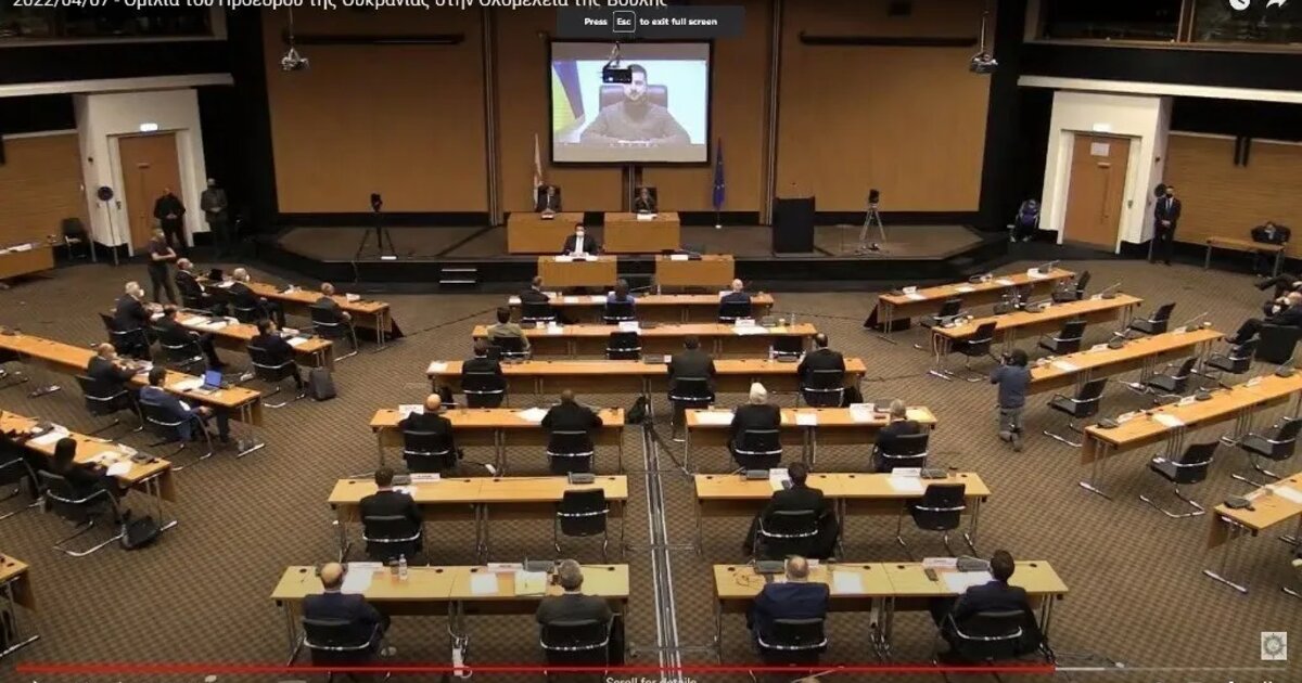 Μετά τη Βουλή των Ελλήνων, ο πρόεδρος της Ουκρανίας, Βολοντίμιρ Ζελένσκι, απευθύνθηκε και στη Βουλή της Κύπρου μέσω τηλεδιάσκεψης.