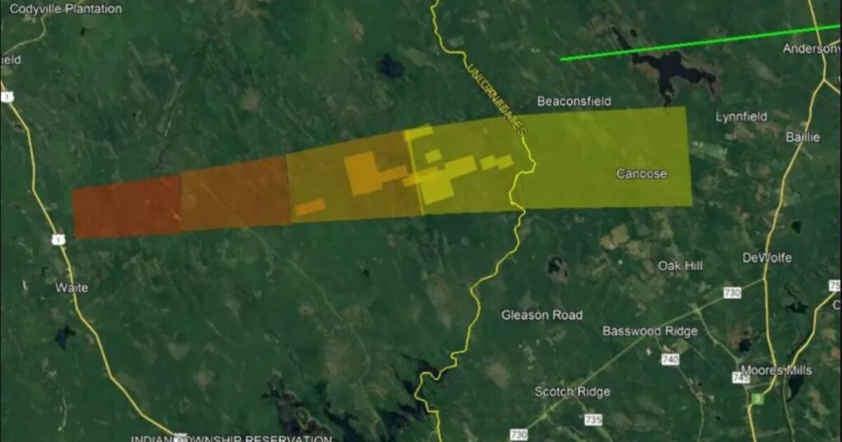 Αυτόπτες μάρτυρες είπας ότι είδαν ένα φλεγόμενο αντικείμενο να περνά πάνω από τα κεφάλια τους. Η πορεία του μετεωρίτη, του πρώτου που εντοπίστηκε στο Μέιν από τότε που η NASA χρησιμοποιεί ραντάρ για να παρατηρεί διαστημικά αντικείμενα που πέφτουν, καταγράφηκε για τέσσερα λεπτά και 40 δευτερόλεπτα πριν συντριβεί κοντά στα σύνορα με τον Καναδά, είπε η NASA.