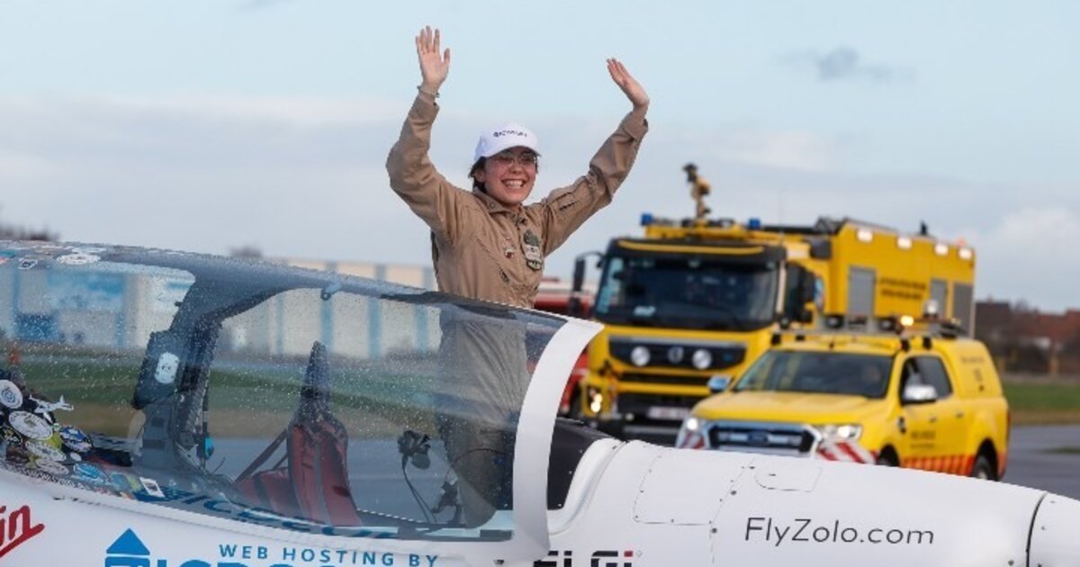 Μια βρετανοβελγίδα έφηβη έγινε σήμερα η νεότερη γυναίκα που έκανε τον γύρο του κόσμου μόνη της και ο πρώτος άνθρωπος που το έκανε πετώντας επί πέντε μήνες με ένα υπερελαφρύ μηχανοκίνητο μονοκινητήριο αεροσκάφος, το Shark, και ολοκλήρωσε μια Οδύσσεια καλύπτοντας πέντε ηπείρους.