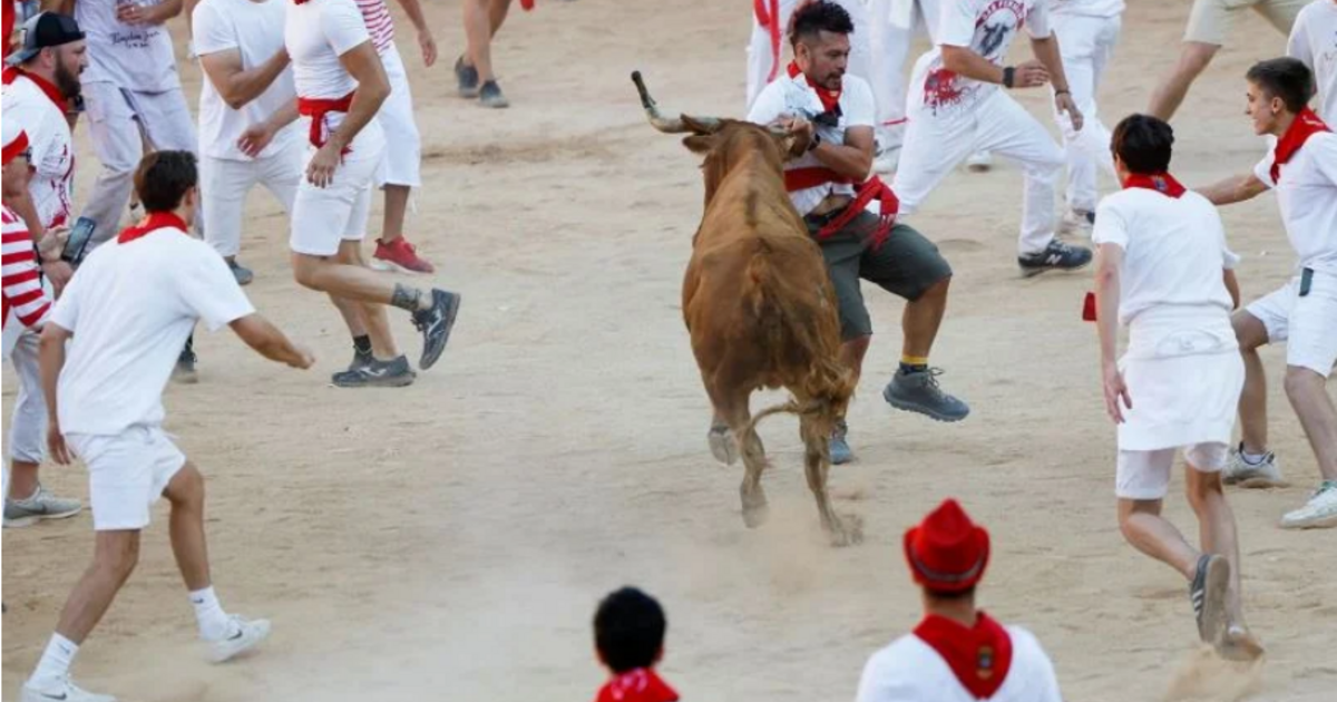 Τηλεοπτικά πλάνα έδειξαν έναν ταύρο να πετάει επανειλημμένα έναν δρομέα πάνω στα ξύλινα φράγματα στην άκρη του ρινγκ και στη συνέχεια να τρυπάει έναν άλλο στο πίσω μέρος του ποδιού. Το θέαμα κράτησε λίγο περισσότερο από τρία λεπτά καθώς εκατοντάδες δρομείς, κυρίως άνδρες, έτρεξαν μανιωδώς μπροστά και μαζί με έξι ταύρους που μάχονταν καθώς περνούσαν σε μια διαδρομή 929 αυλών στους πλακόστρωτους δρόμους αυτής της βόρειας πόλης.