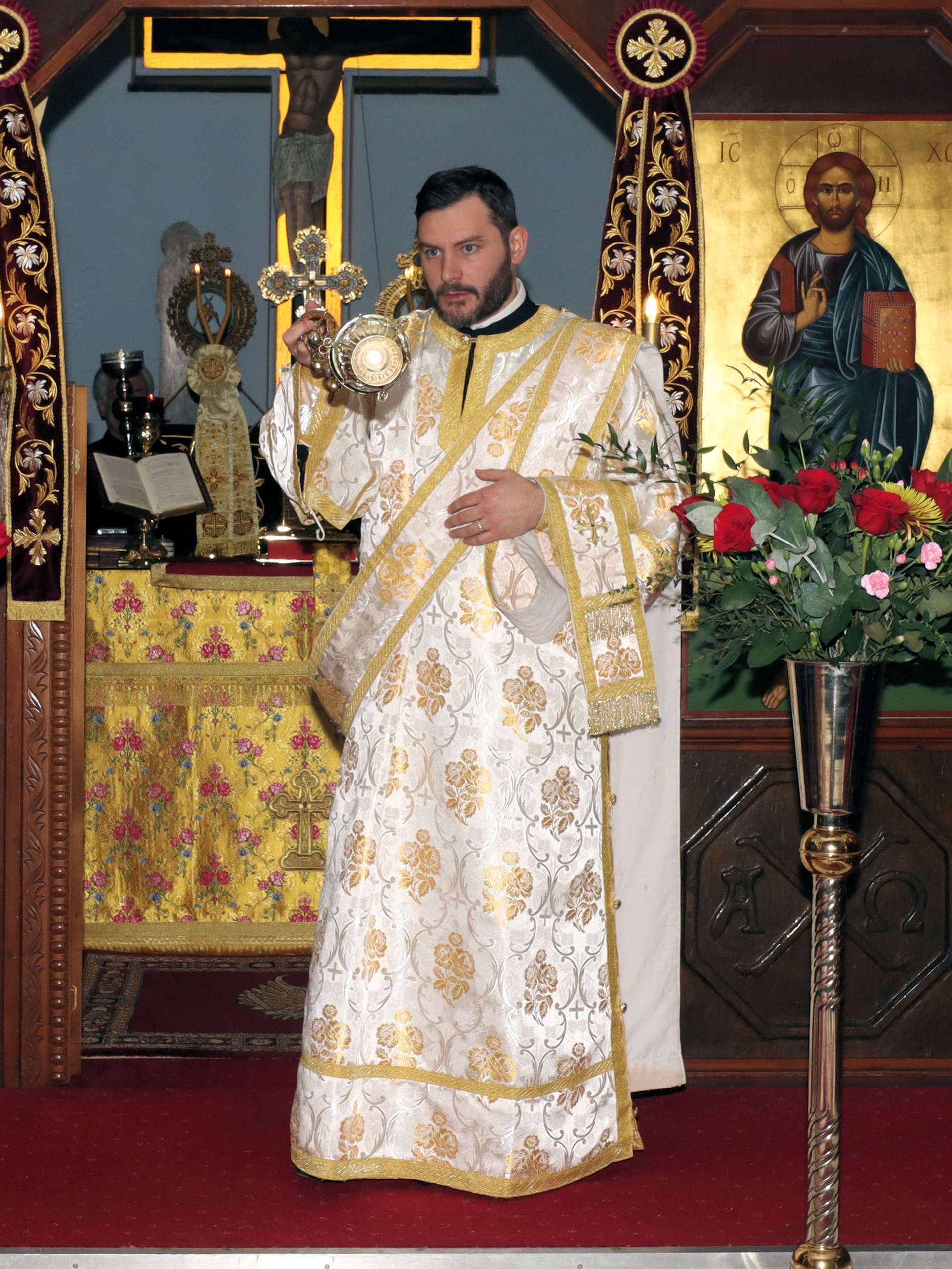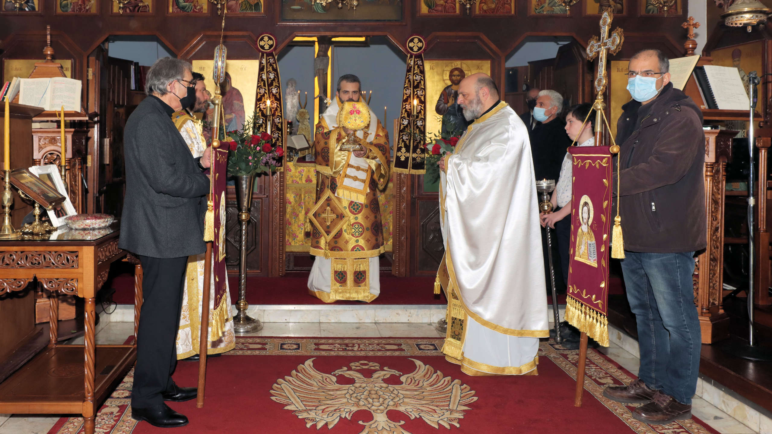 Συλλειτούργησαν ο Πρωτοπρεσβύτερος π. Θεόδωρος Πολυβίου και ο Διάκονος π. Παντελεήμων Maxfield.