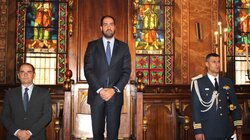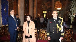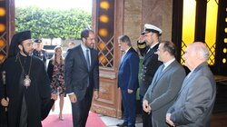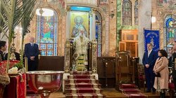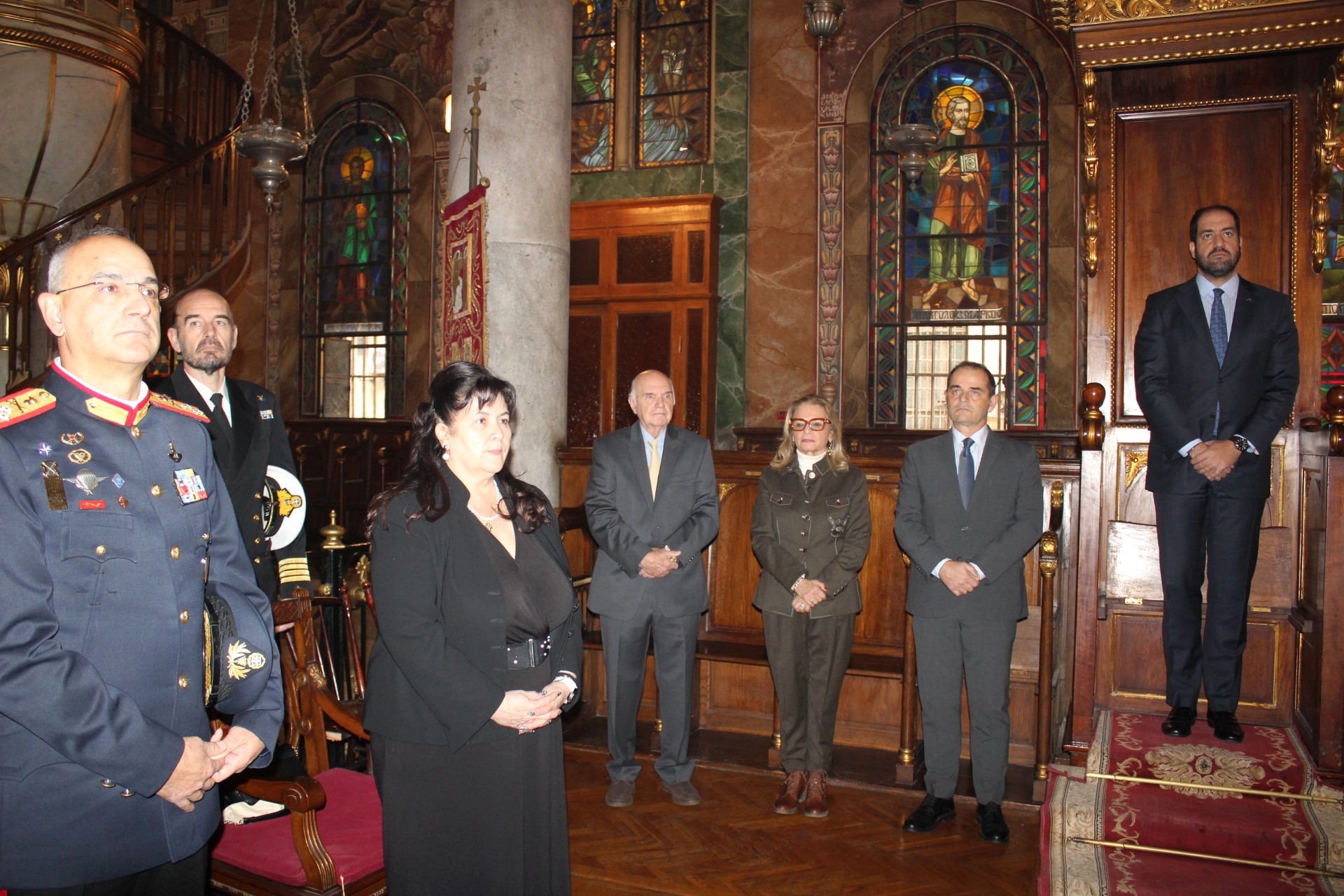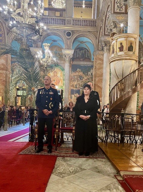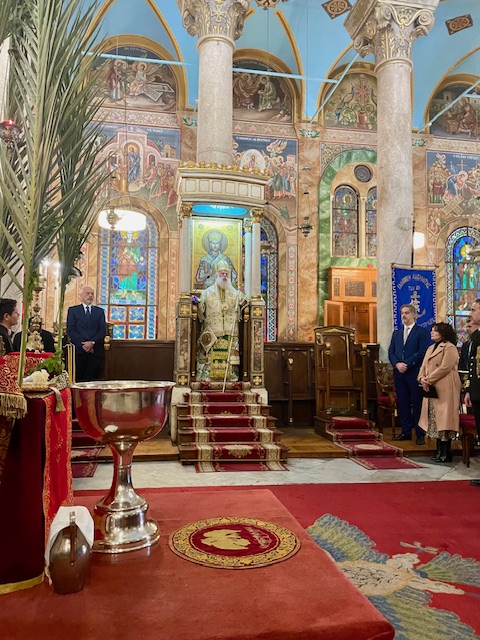 Επίσημοι παριστάμενοι εις την Θεία Λειτουργία, ελθόντες εξ Ελλάδος αποκλειστικά για την χαρμόσυνη Εορτή των Θεοφανίων: ο Εξοχότατος Υφυπουργός Άμυνας κ. Ιωάννης Αχιλλέα Κεφαλογιάννης, και ο Αρχηγός του ΓΕΕΘΑ, Ενδοξωτατος Στρατηγός κ. Δημήτριος Χούπης, συνοδευόμενοι υπό των εριτιμων συζύγων τους.
