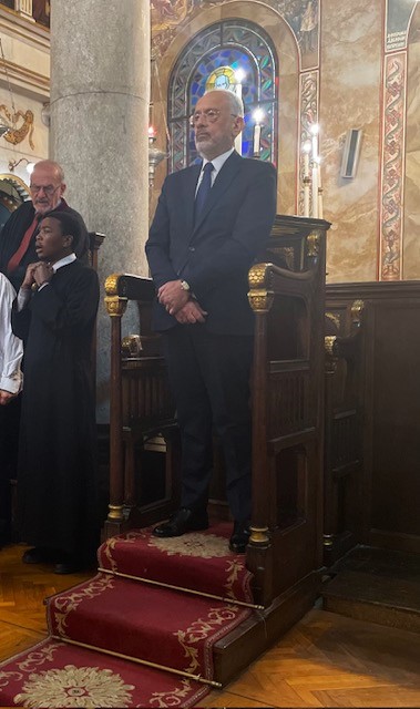 Παρόντες επίσης: ο Πρέσβυς της Ελλάδος στην Αίγυπτο κ. Νικόλαος Παπαγεωργίου, η Πρέσβυς της Κυπριακής Δημοκρατίας στην Αίγυπτο κα Πόλυ Ιωάννου, ο Ακόλουθος Άμυνας της Ελλάδας στην Αίγυπτο κ. Στέργιος Πούλιος, ο Γενικός Πρόξενος της Ελλάδας στην Αλεξάνδρεια κ. Ιωάννης Πυργάκης μετά της συζύγου του, ο Πρόεδρος της Ελληνικής Κοινότητας Αλεξανδρείας κ. Ανδρέας Βαφειάδης συνοδευόμενος από τον Γενικό Γραμματέα κ. Νικόλαο Κατσιμπρή, τον Οικονομικό Επόπτη κ. Εμμανουήλ Τατάκη και τον Κοινοτικό Επίτροπο κ. Βασίλειο Ζουέ, η Πρόεδρος του ΕΝΟΑ και του Πτολεμαίου Α’ κα Λιλίκα Θλιβίτου, ο Σύνδεσμος του Π/Ν στην Αλεξάνδρεια κ. Χρυσόστομος Ράγκος μαζί με άλλους εκπροσώπους της Παροικίας και του αραβόφωνου Ορθοδόξου πληρώματος, τίμησαν την σπουδαία ημέρα της Χριστιανοσύνης.