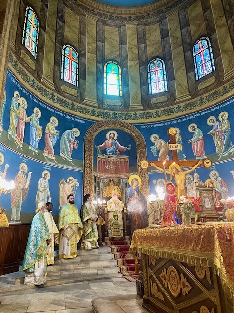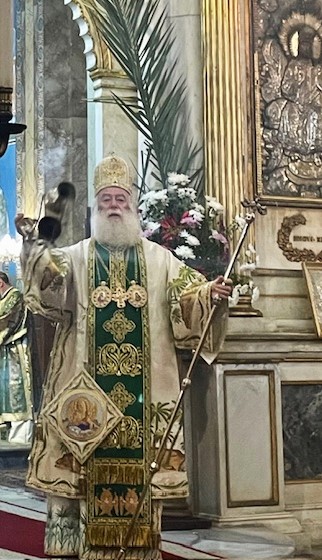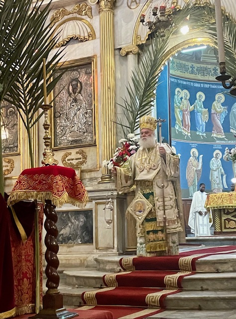 Συλλειτουργούντες με τον Μακαριώτατο, ο Σεβασμιότατος Μητροπολίτης Πηλουσίου κ. Νάρκισσος Πατριαρχικός Επίτροπος Αλεξανδρειας, ο Σεβασμιότατος Μητροπολίτης Ταμιάθεως κ. Γερμανός, Προϊστάμενος της Πατριαρχικής Μονης Οσίου Σάββα, ο Πανοσιολογιότατος Αρχιμανδρίτης και Καθηγούμενος της Ιεράς Μονής του Αγίου Γεωργίου κ. Δαμασκηνός και πολλοί άλλοι ιερείς της Πατριαρχικής Αυλής και του Αραβο-Ορθόδοξου Κλήρου και των ιεροσπουδαστών της Πατριαρχικης Σχολής «Μ.Αθανασιος», υπό την γενική επίβλεψη του γνώστη και ακάματου Τελετάρχη, του Σεβασμιωτάτου Μητροπολίτου Πτολεμαΐδος κ.Παντελεήμονος, Αρχιγραμματεα της Ιεράς Συνόδου, προσέδωσαν την κατανυκτικότητα ταυτόχρονα με την εσώτερη λύτρωση που αναγεννά την ψυχή του ανθρώπου, η λαμπρότητα της ημέρας.