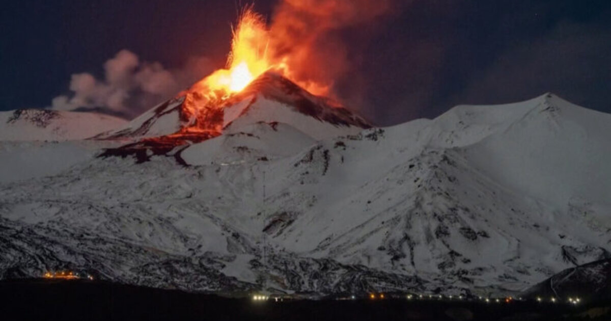 Η χιονισμένη Αίτνα εκτοξεύει λάβα στον νυχτερινό ουρανό