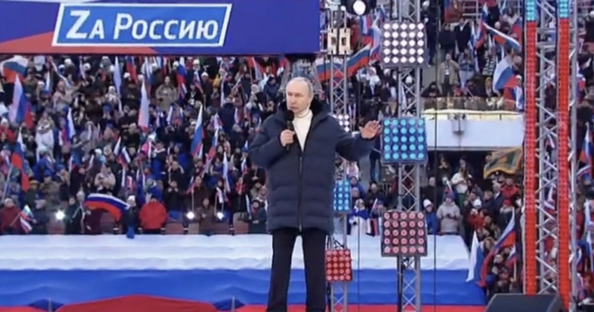 Ο Ρώσος πρόεδρος Βλαντίμιρ Πούτιν χαιρέτισε την «ειδική επιχείρηση» -όπως την αποκαλεί η Μόσχα- στην Ουκρανία, εμφανιζόμενος στη σκηνή σε συγκέντρωση στο στάδιο Λουζνίκι της Μόσχας, μπροστά σε χιλιάδες ανθρώπους.