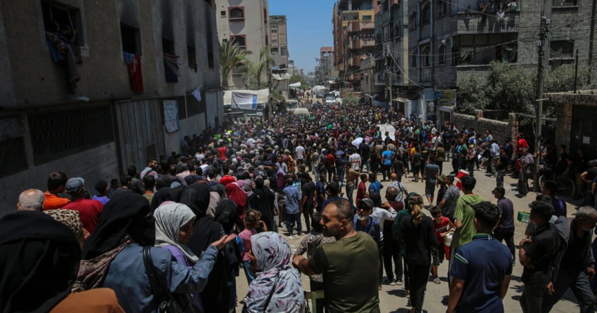Στις αρχές Μαρτίου το Ισραήλ επέβαλε πλήρη αποκλεισμό στον παλαιστινιακό θύλακα με αποτέλεσμα να παρουσιάζονται τεράστιες ελλείψεις σε τρόφιμα, φάρμακα και άλλα είδη πρώτης ανάγκης. Στα τέλη Μαΐου, το Ανθρωπιστικό Ίδρυμα για τη Γάζα (GHF), που στηρίζεται από το Ισραήλ και τις ΗΠΑ, άρχισε να μοιράζει τρόφιμα σε ειδικά κέντρα διανομής.