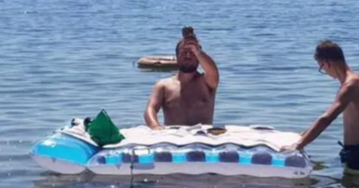 Ιερέας χρησιμοποιεί φουσκωτό στρώμα και κάνει λειτουργία στη θάλασσα! – Δείτε το video