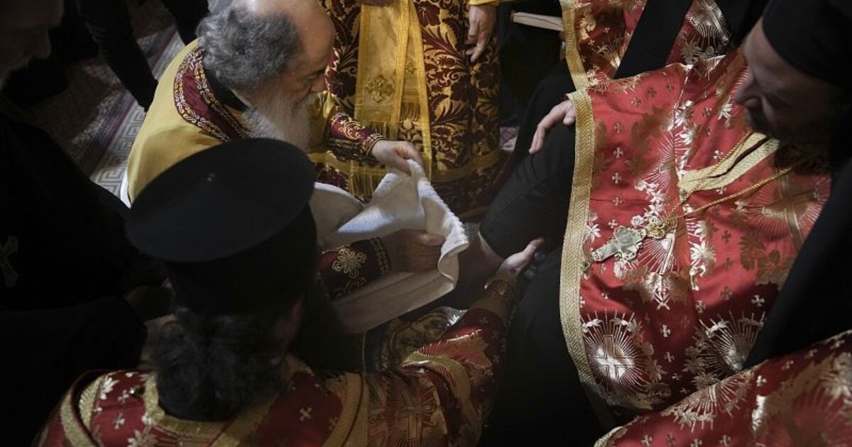 Σε κλίμα κατάνυξης αλλά και μεγάλου προβληματισμού φέτος λόγω της έντασης στην Μέση Ανατολή ο Πατριάρχης Ιεροσολύμων Θεόφιλος ΙΙΙ ένιψε τα πόδια 12 Αρχιμανδριτών κατά την λειτουργία του Ιερού Νιπτήρος στον Πανίερο Ναό της Αναστάσεως.