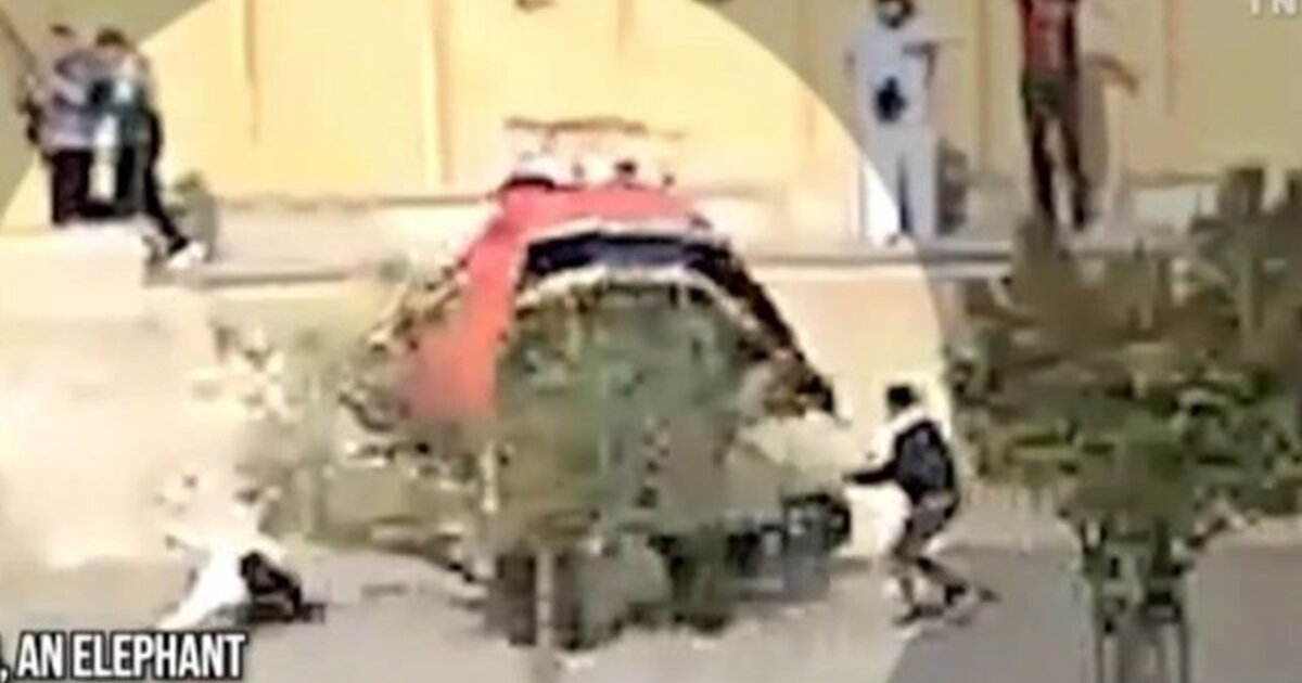 Στα πλάνα επίσης διακρίνεται ένας άντρας να πέφτει από την ορμητική κίνηση του ελέφαντα.