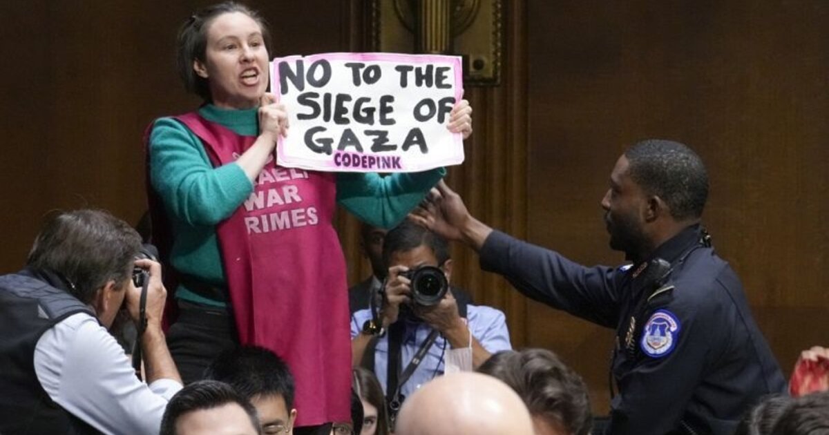 Διαδηλωτές που ζητούσαν κατάπαυση του πυρός στη Γάζα διέκοψαν την ομιλία του υπουργού Εξωτερικών των ΗΠΑ Άντονι Μπλίνκεν στη Γερουσία την Τρίτη.