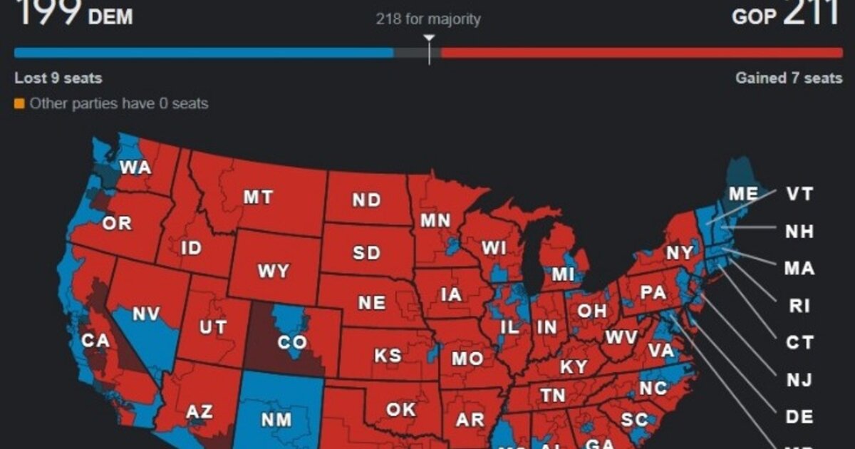 Αλλά η νίκη του GOP προβλέπειται να είναι πολύ μικρότερη από το «κόκκινο κύμα» που προμηνυόταν. Το αμερικανικό ειδησεογραφικό δίκτυο NBC News έκανε πρόβλεψη σήμερα το πρωί για μια εύθραυστη πλειοψηφία πέντε εδρών για τους Ρεπουμπλικάνους με 220 βουλευτές του, έναντι 215 για τους Δημοκρατικούς.