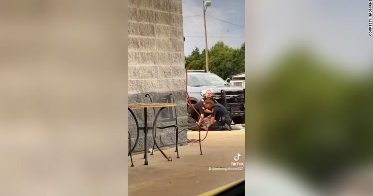 Μια γυναίκα που δεν φαίνεται στο βίντεο ακούγεται να λέει: «Μην τον χτυπάτε. Χρειάζεται φάρμακα». Ο ένας αστυνομικός απαντά: «Κάνε πίσω», ενώ ένας άλλος τη διατάσσει να μπει στο αυτοκίνητο, σύμφωνα με το CNN.