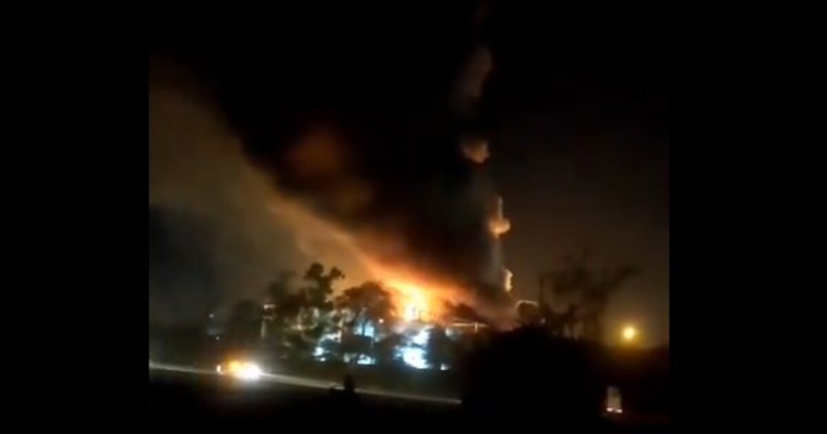 Οι εικόνες που μεταδίδει η ιρανική τηλεόραση δείχνουν τεράστιες φλόγες να ξεπηδούν από τις εγκαταστάσεις και πυκνό μαύρο καπνό να υψώνεται στον ουρανό της περιοχής.