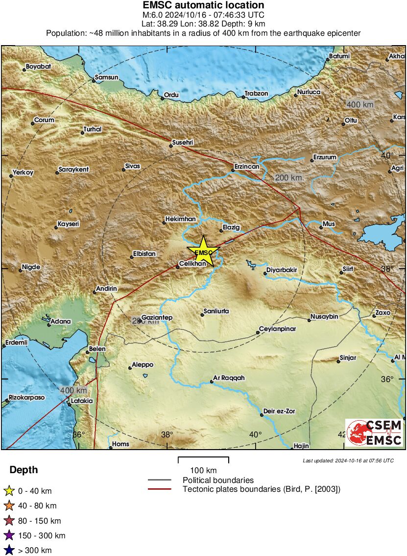 ΑΡΧΙΚΗ / Κόσμος Σεισμός 5.9 Ρίχτερ στην Τουρκία Σημειώθηκε το πρωί της Τέταρτης 16.10.2024 Newsroom SHARE: Facebook Twitter Messenger Whatsapp Viber SHARE Facebook Twitter Messenger Whatsapp Viber Facebook Twitter Messenger Whatsapp Viber Σεισμός μεγέθους 6,3 βαθμών έπληξε την ανατολική Τουρκία, σύμφωνα με την πρώτη εκτίμηση από το Ευρωμεσογειακό Σεισμολογικό Κέντρο, το πρωί της Τέταρτης. Λίγα λεπτά μετά διορθώθηκε το μέγεθος και προσδιορίστηκε στα 5.9 Ρίχτερ. Ακολουθήστε το Cretalive στο Google News και στο FacebookΚάντε εγγραφή στο κανάλι μας στο YouTube Σχετικά Tags Τουρκία Σεισμός Γίνε ο ρεπόρτερ του CRETALIVE Στείλε την είδηση