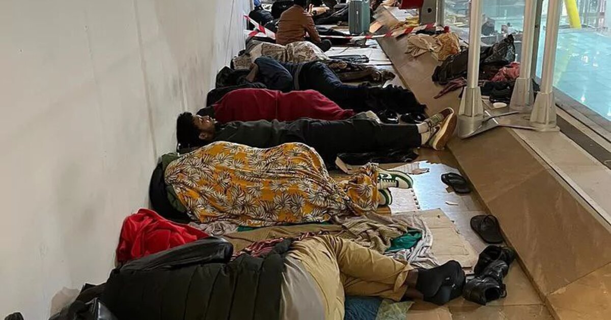 🇪🇸Crisis at Barajas airport in Madrid, Spain, due to the large number of migrants flooding in admissions lounges or stranded in corridors within the terminal.#Spain #Madrid #migrantes #migrants #immigration #immigrants #ILLEGALimmigration #ILLEGALimmigrants #CloseTheBorder… pic.twitter.com/wz7lVpHWaB