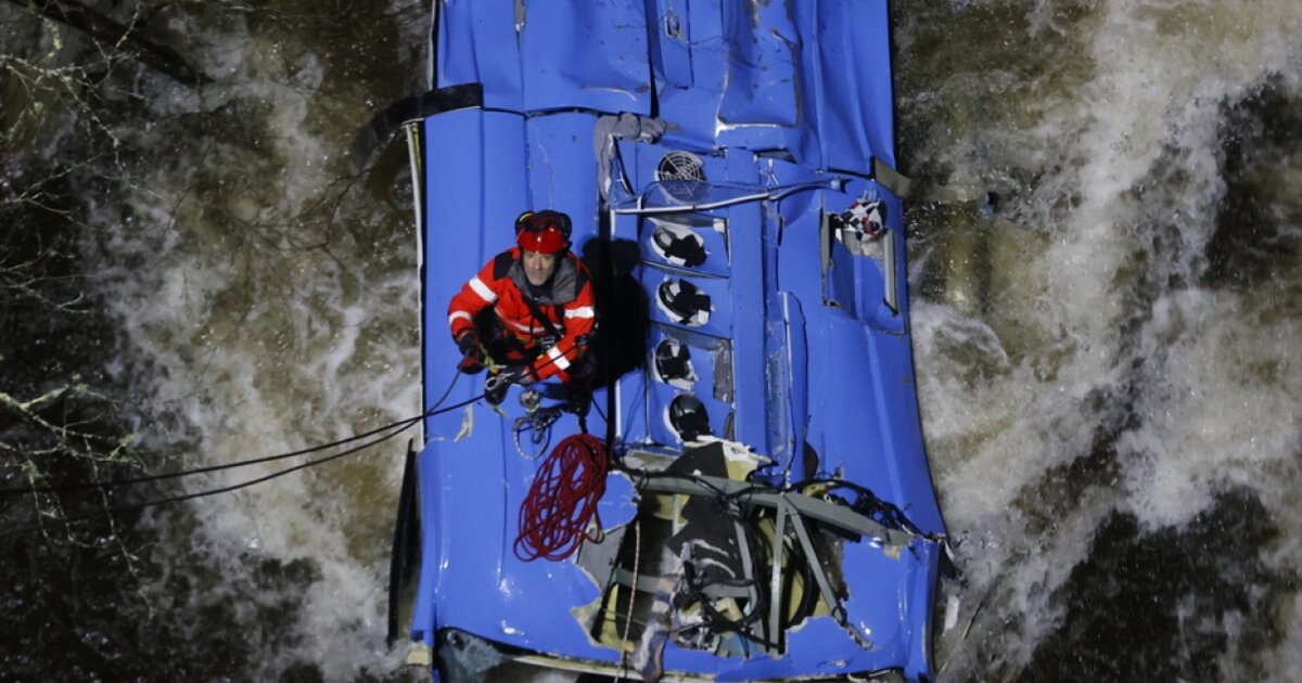 Συνολικά, οκτώ ή εννέα άνθρωποι επέβαιναν στο λεωφορείο που έπεσε από μια γέφυρα στην κοίτη του ποταμού. Δύο εντοπίστηκαν ζωντανοί και μεταφέρθηκαν σε νοσοκομεία: ο οδηγός, ηλικίας περίπου 60 ετών, και μια επιβάτιδα.