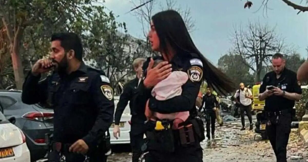 Η αστυνομία του Ισραήλ, έδωσε στη δημοσιότητα τη στιγμή που ένας διασώστης βγήκε από τα συντρίμμια των σπιτιών κρατώντας ένα μικρό μωρό, το οποίο φέρεται να επέζησε με ελαφρά τραύματα.