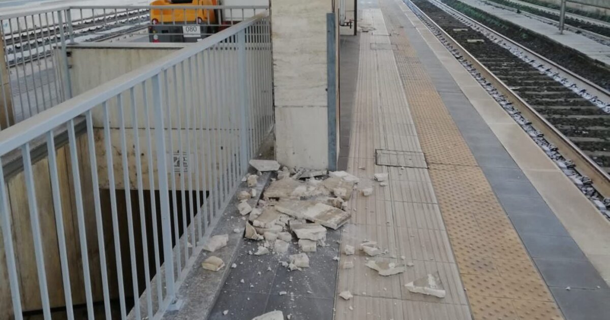 Ο σιδηροδρομικός σταθμός στην Ανκόνα υπέστη ζημιές, με πεσμένη τοιχοποιία να καλύπτει τις σκάλες και την πλατφόρμα του σταθμού.