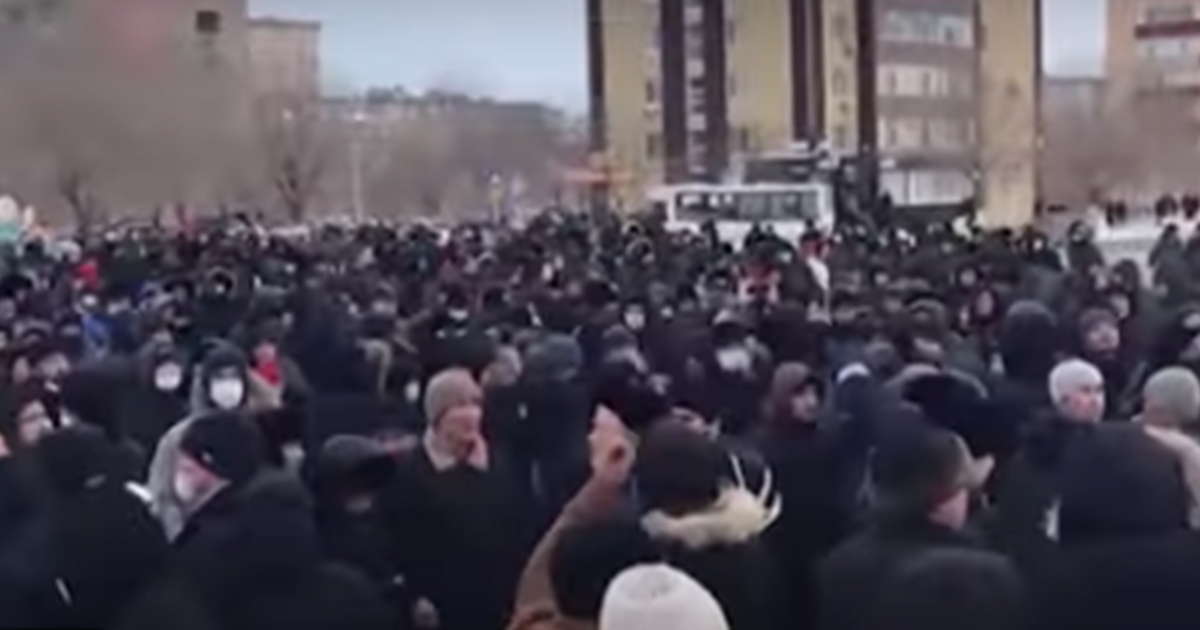 Το κτίριο του δημαρχείου στο Αλμάτι έχει περικυκλωθεί από διαδηλωτές οι οποίοι φαίνεται ότι κατάφεραν να σπάσουν την περίμετρο ασφαλείας που είχαν στήσει οι δυνάμεις της τάξης παρά τις βομβίδες κρότου-λάμψης που έριχναν αυτές. Οι εκρήξεις από τις βομβίδες κρότου-λάμψης ακούγονταν σε όλο το κέντρο της πόλης.