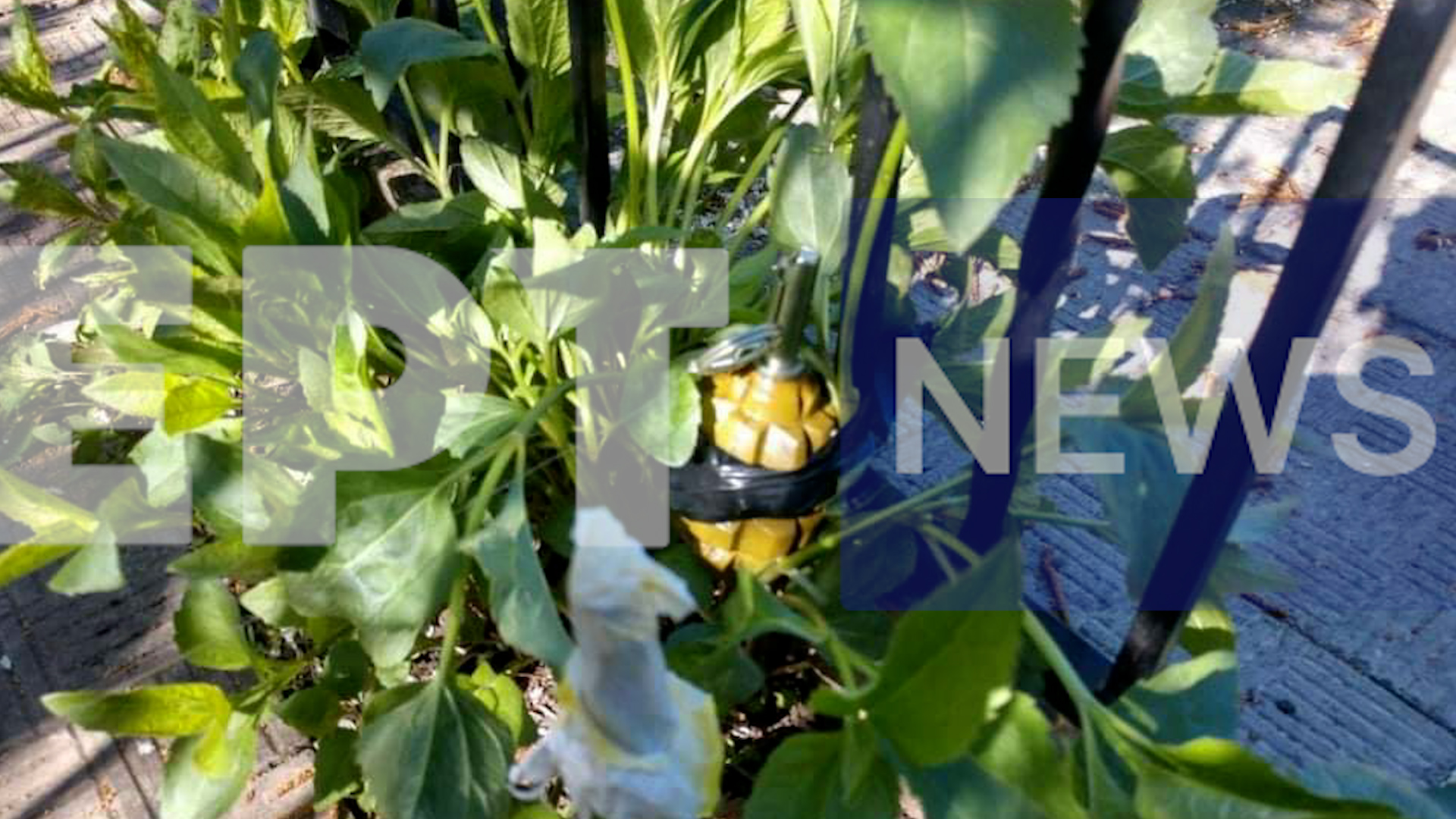 Ο απεσταλμένος της ΕΡΤ Γιώργος Σιδέρης εξασφάλισε εικόνες που δείχνουν εισόδους και αυλές σπιτιών παγιδευμένες με χειροβομβίδες.