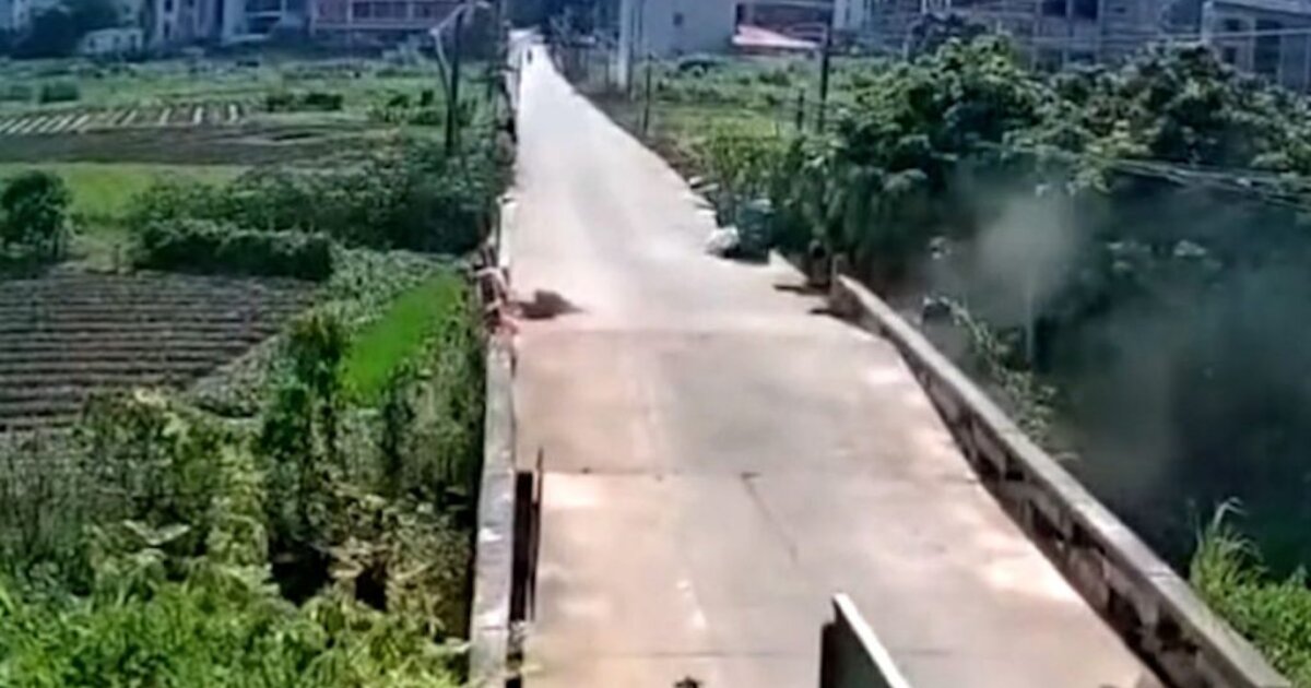 Κάμερα κατέγραψε τη στιγμή που μια γέφυρα στην Κίνα κόπηκε «στα δύο», εν μέσω του καύσωνα που πλήττε πολλές περιοχές της χώρας.