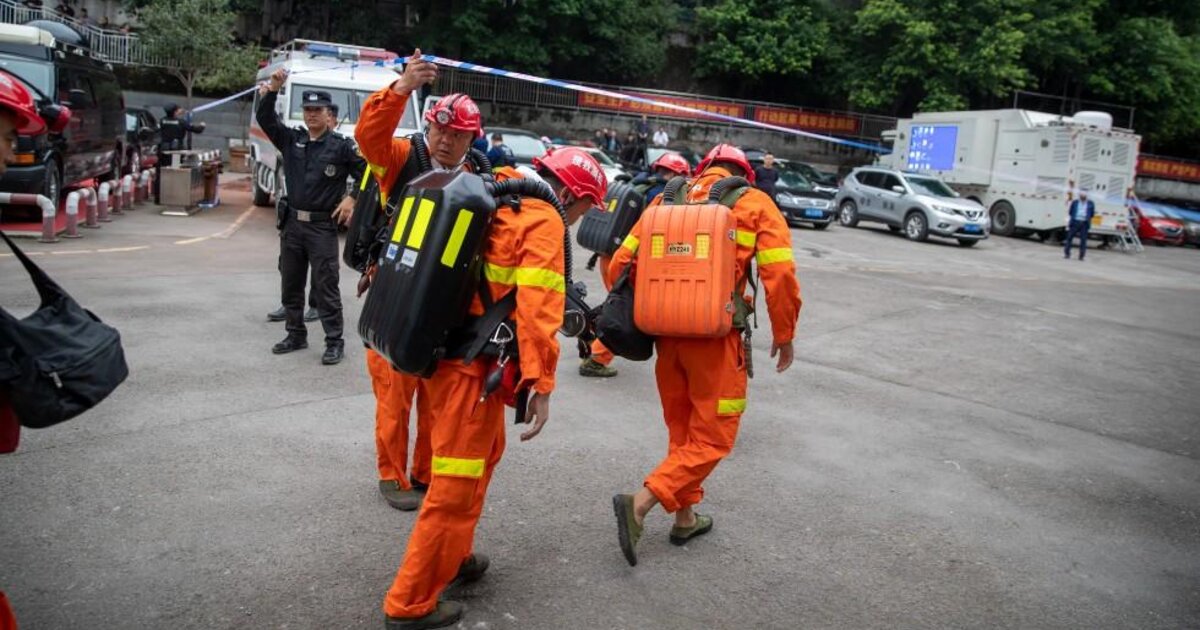 Σε άλλο βίντεο που μεταδόθηκε επίσης από το Xinhua, διασώστες με στρατιωτικές στολές τρέχουν προς το σημείο της καταστροφής, με φτυάρια στα χέρια.