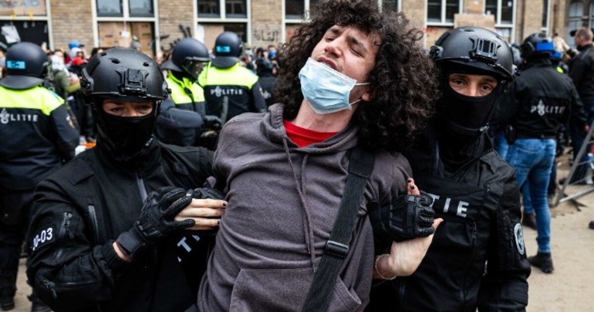 Σε πλάνα του ολλανδικού τηλεοπτικού δικτύου AT5 διακρίνονται αστυνομικοί να συλλαμβάνουν διαδηλωτές και, χρησιμοποιώντας εκσκαφέα, να ξηλώνουν οδοφράγματα που είχαν στήσει φοιτητές.