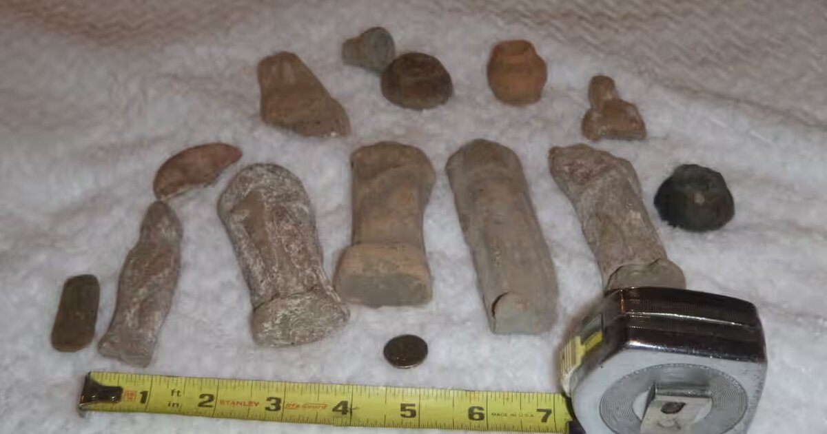 Σε φωτογραφίες που δημοσιοποίησε το ιταλικό υπουργείο Πολιτισμού εικονίζονται αρκετά χρωματιστά κεραμικά, το κεφάλι ενός αγάλματος και μερικά νομίσματα, που εκτέθηκαν σε μια τελετή νωρίτερα αυτή την εβδομάδα στη Νέα Υόρκη.