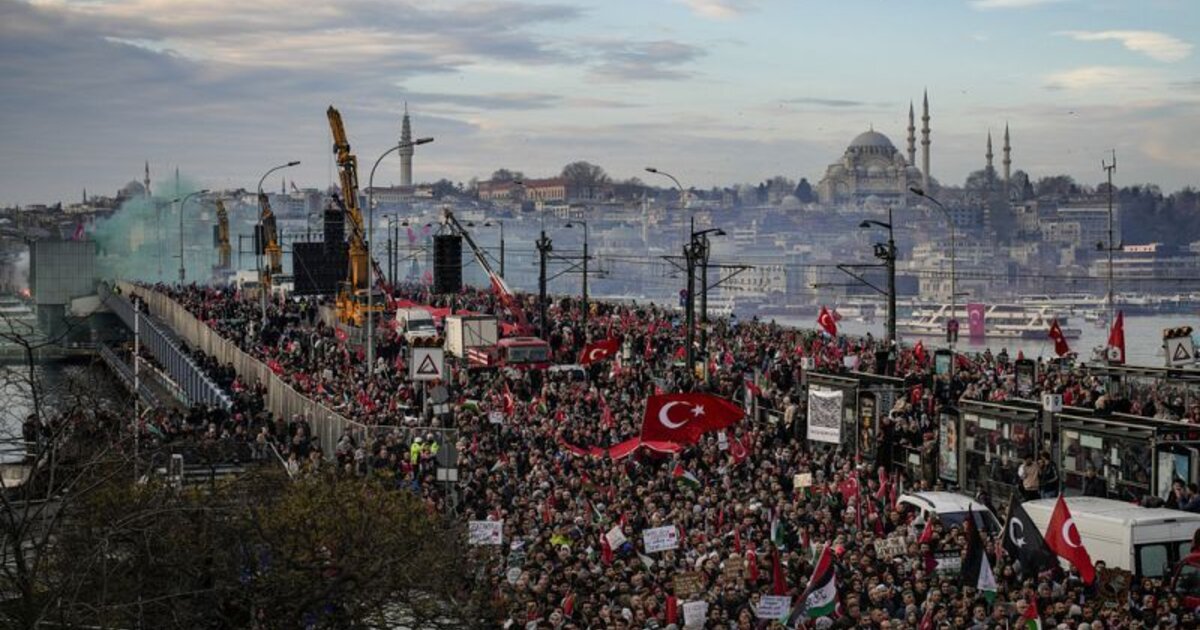 Δεκάδες χιλιάδες κόσμου συγκεντρώθηκαν στην Κωνσταντινούπολη και διαδήλωσαν κατά του Ισραήλ και υπέρ των Παλαιστινίων.