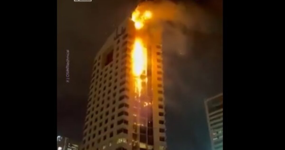 Βίντεο που κυκλοφορεί στο διαδίκτυο καταγράφει το κτίριο να καίγεται σε πολλούς ορόφους, με πυκνούς καπνούς να υψώνονται πάνω από την πόλη
