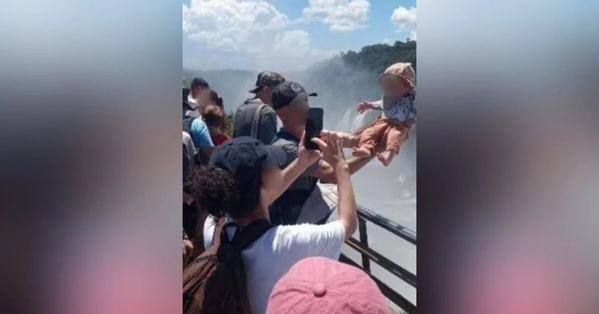 Το περιστατικό, που καταγράφηκε σε βίντεο το απόγευμα της ίδιας ημέρας, έκανε γρήγορα τον γύρο των μέσων κοινωνικής δικτύωσης, προκαλώντας κύμα αντιδράσεων. Σύμφωνα με τη βραζιλιάνικη εφημερίδα O Globo και άλλα νοτιοαμερικανικά μέσα ενημέρωσης, ο άνδρας κρατούσε το μωρό έξω από πεζογέφυρα και προστατευτικό κιγκλίδωμα, στην «Λαιμό του Διαβόλου» (Garganta del Diablo), τον μεγαλύτερο και εντυπωσιακότερο καταρράκτη του συμπλέγματος.