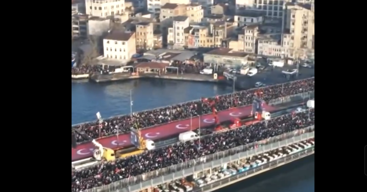 Η πορεία ξεκίνησε από αρκετά τζαμιά μετά την πρωινή προσευχή, και κινήθηκε μέσω της γέφυρας του Γαλατά με τους διαδηλωτές να κρατούν σημαίες της Παλαιστίνης και της Τουρκίας.