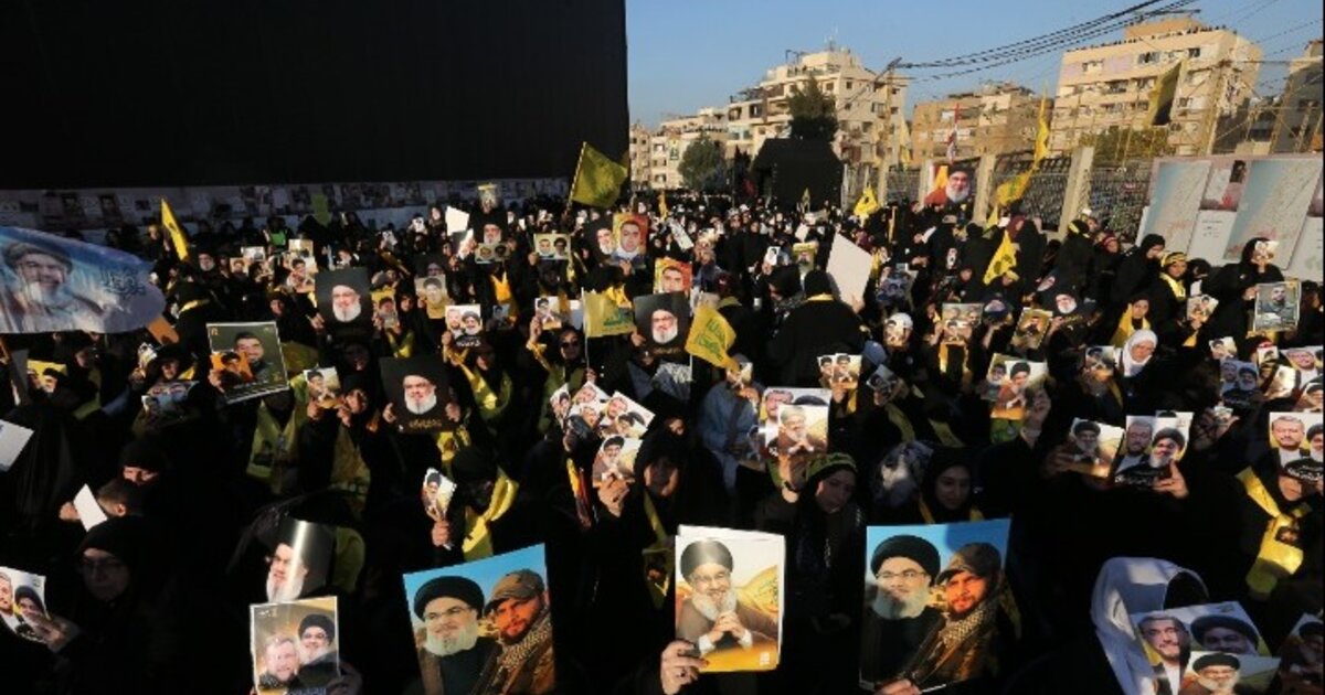 Το βράδυ της Πέμπτης, χιλιάδες υποστηρικτές της οργάνωσης τίμησαν την επέτειο της δολοφονίας Νασράλα, το πορτρέτο του οποίου προβλήθηκε σε ένα εμβληματικό σημείο της πρωτεύουσας παρά τη διαφωνία των αρχών.