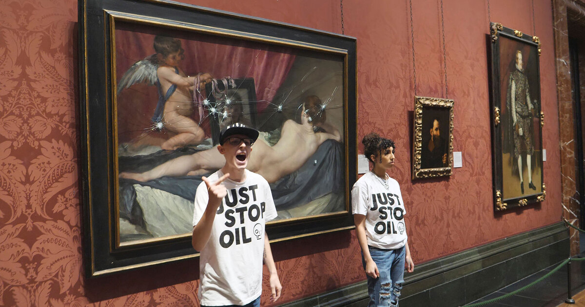 Σύμφωνα με τις αστυνομικές αρχές, οι ακτιβιστές της ομάδας «Just Stop Oil» στόχευσαν με μικρά σφυριά τον πίνακα του Βελάσκεθ που βρίσκεται στην Εθνική Πινακοθήκη του Λονδίνου. Φωτογραφίες απεικόνιζαν το προστατευτικό γυάλινο πάνελ να φέρει αρκετές τρύπες.