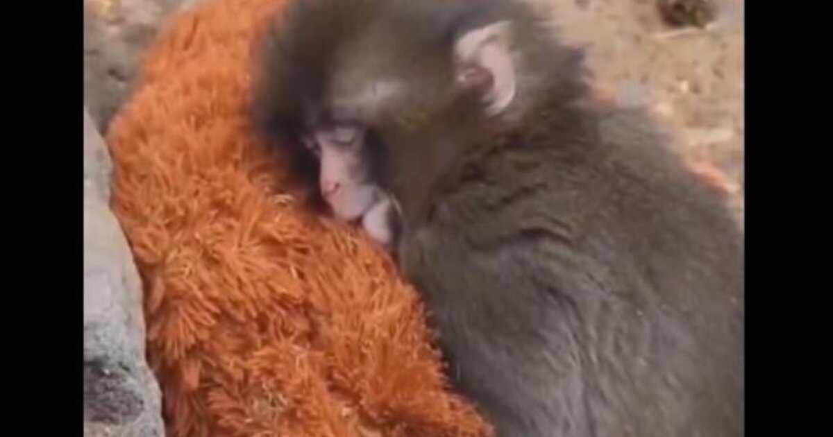 Μακάκος βρήκε παρηγοριά σε λούτρινο ουρακοτάγκο όταν τον απέρριψε η μαμά του - Βίντεο