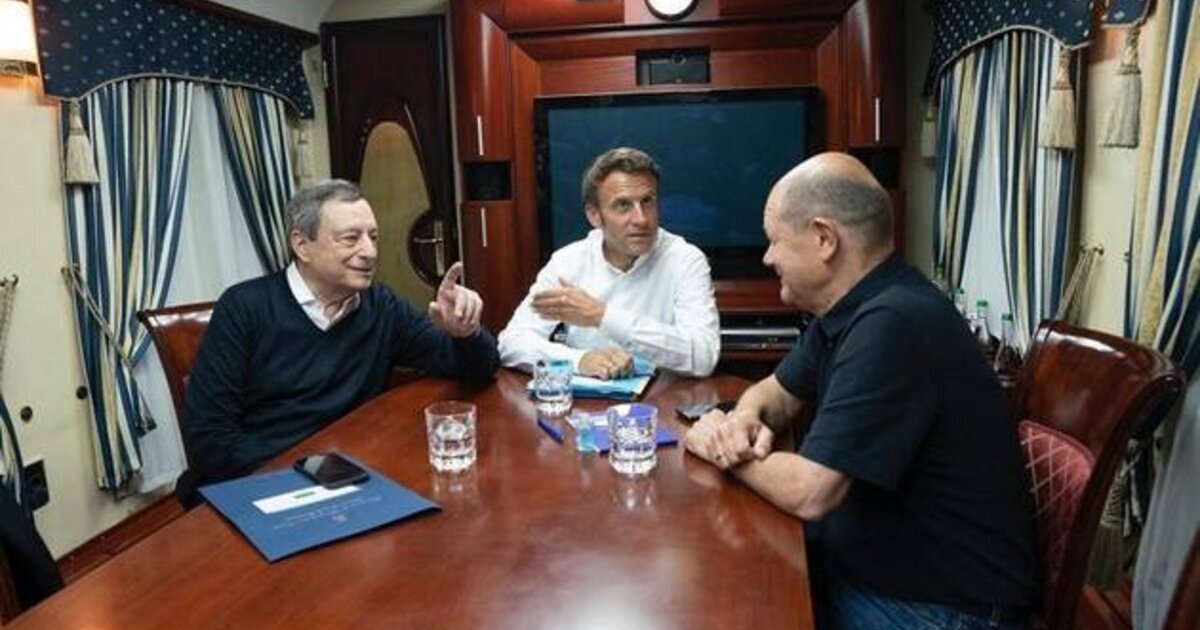 Οι τρεις Ευρωπαίοι ηγέτες επιβιβάστηκαν σε ειδικό τραίνο στην Πολωνία και αναμένεται να φτάσουν αργότερα σήμερα το πρωί στο Κίεβο της Ουκρανίας, σύμφωνα με το γερμανικό δίκτυο ZDF και την ιταλική εφημερίδα La Repubblica, η οποία δημοσίευσε μία φωτογραφία των τριών ανδρών μέσα από το τρένο.