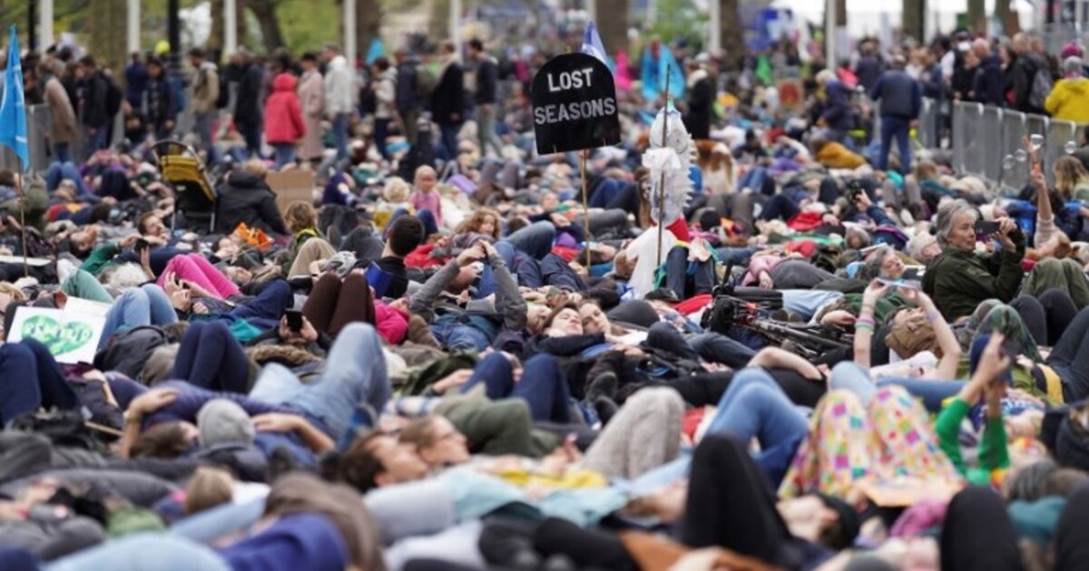 Οικογένειες με μωρά στο καροτσάκι, συνταξιούχοι, έφηβοι, συγκεντρώθηκαν για τη διαδήλωση με την ευκαιρία της Παγκόσμιας Ημέρας της Γης, στο Γουεστμίνστερ, την περιοχή όπου βρίσκεται το Κοινοβούλιο. Δεκάδες άλλες οργανώσεις ανταποκρίθηκαν στο κάλεσμα της XR.