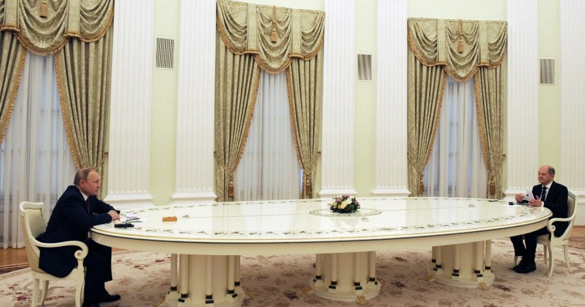 Το ίδιο τεράστιο τραπέζι όπου επέλεξε ο Ρώσος πρόεδρος για να συνομιλήσει προ ημερών με τον Γάλλο ομόλογό του και το οποίο αρκετοί σχολιαστές ερμήνευσαν ως επίδειξη ισχύος ή τρολάρισμα, επέλεξε και σήμερα για να συναντηθεί με τον Γερμανό καγκελάριο Όλαφ Σολτς.