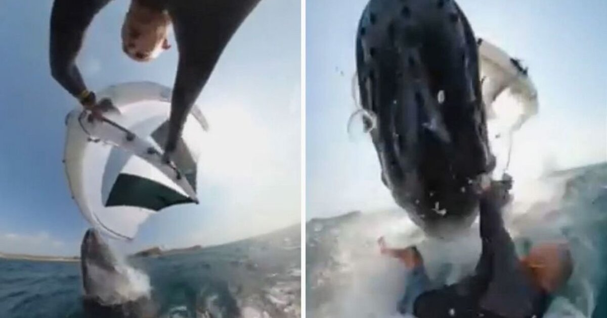 φάλαινα τινάχτηκε από το νερό ακριβώς μπροστά του ρίχνοντας τον