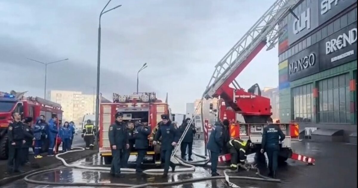 Σύμφωνα με το ρωσικό υπουργείο Αντιμετώπισης Εκτάκτων Καταστάσεων, η πυρκαγιά προκάλεσε καταστροφές σ’ έναν από τους ψηλότερους ορόφους και στην οροφή του εμπορικού κέντρου.