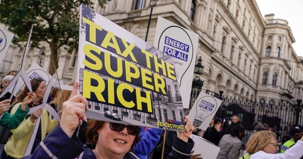Οι διαδηλωτές λένε ότι αν φορολογηθούν οι πλούσιοι, θα υπάρξει οικονομικό περιθώριο για περισσότερη χρηματοδότηση κατά της κλιματικής αλλαγής.