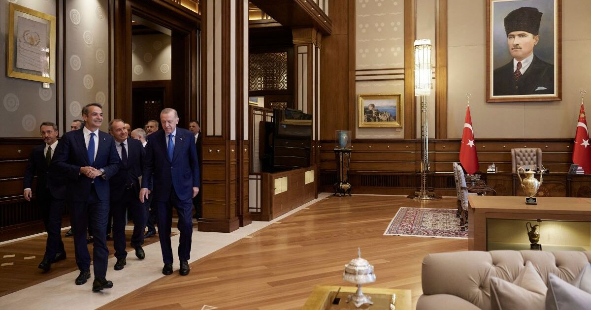 «Δεν μπορώ παρά να ξεκινήσω με τις ευχαριστίες μου για τη ζεστή φιλοξενία. Μια συνάντηση η οποία είναι η τέταρτη μέσα στους τελευταίους δέκα μήνες. Αποδεικνύει ότι μπορούμε να καθιερώσουμε την προσέγγιση αμοιβαίας κατανόησης όχι ως εξαίρεση, αλλά ως παραγωγική κανονικότητα που δεν αναιρείται από τις γνωστές διαφορές στις θέσεις μας», ανέφερε ο Κυριάκος Μητσοτάκης στο πλαίσιο των κοινών δηλώσεών του με τον Ρετζέπ Ταγίπ Ερντογάν στην Άγκυρα.