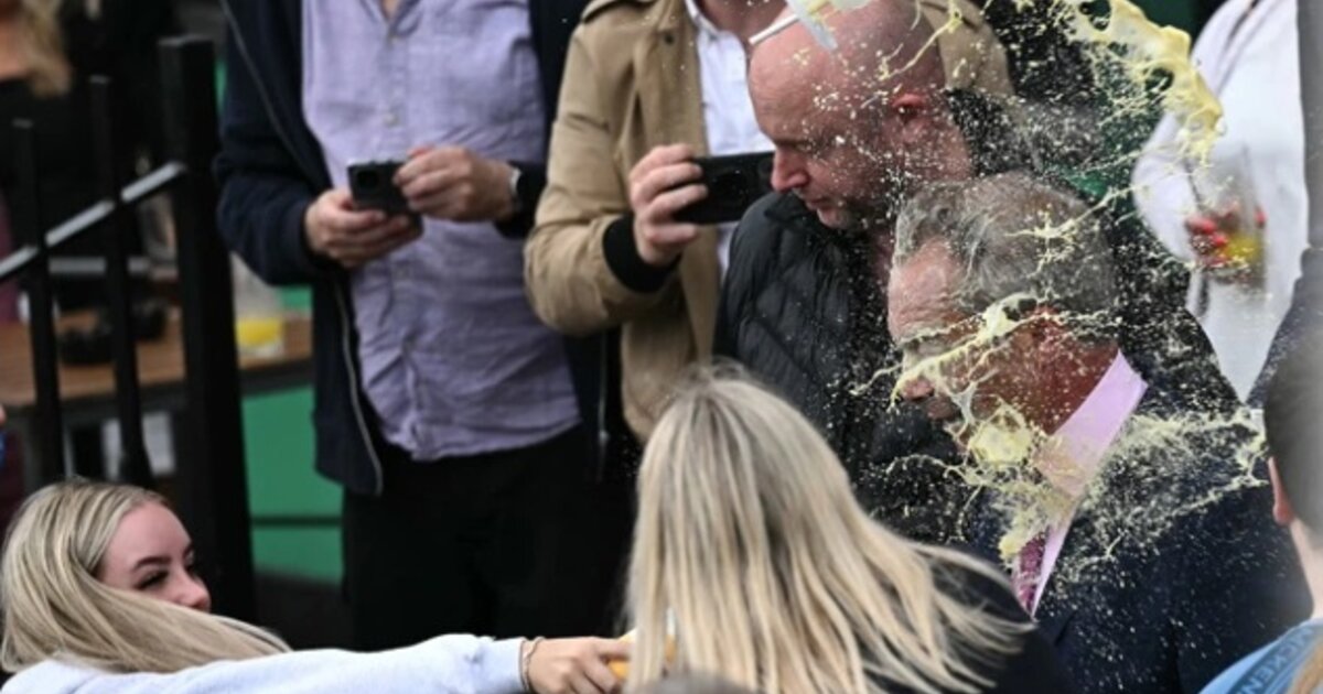 Moment Nigel Farage is splattered with milkshake as he launches campaign pic.twitter.com/87YkADFpbC
