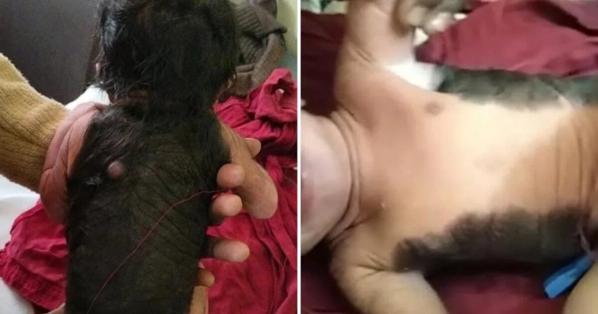 Το νεογέννητο βρέφος είχε καλυμμένο τουλάχιστον το μισό σώμα του με σκούρες μαύρες τρίχες, που μοιάζουν σαν γούνα ζώου. Πρόκειται για μια πάθηση που εμφανίζεται περίπου σε 1 στα 20.000 βρέφη παγκοσμίως και «συνήθως μεγαλώνει με τον ίδιο ρυθμό που μεγαλώνει το σώμα και τελικά να έχει διάμετρο τουλάχιστον 40 εκατοστά», σύμφωνα με τον δρ. Ikram Hussain.